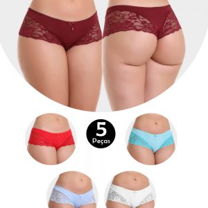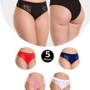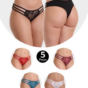 Kit 5 Calcinha IMI Lingerie Tanga Fio Dental Em Microfibra E Renda Nairobi