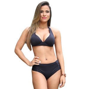 RIKINTE Biquini Conforto Cintura Alta de Cós Alto Preto Plus Size com Bojo