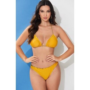 RIKINTE Biquini Fazer Marquinha de Bronze Cortininha Preto com Bojo Estampado Verão Fita
