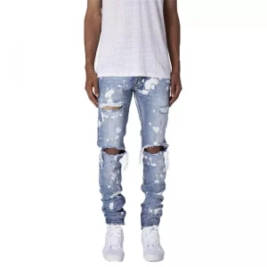 Jeans afligido neve lavagem pintura dot design lápis calças dos homens nova moda magro jean joelho buracos denim calças kot pantlon