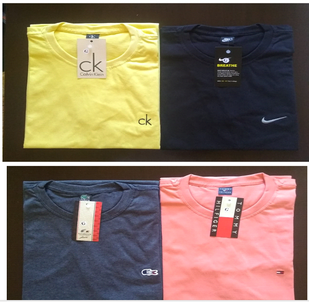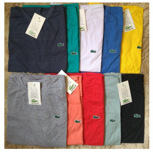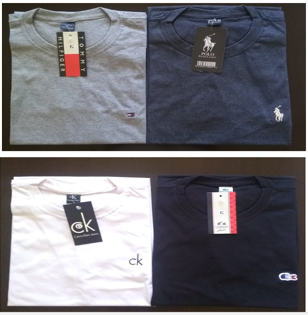 Todas as peças são confeccionadas com malha fio 26.1 com 100% de algodão em sua composição causando um excelente conforto ao cliente.120 Peças. Nike, Reserva, Tommy, Lacoste e Calvin Klein entre outras…