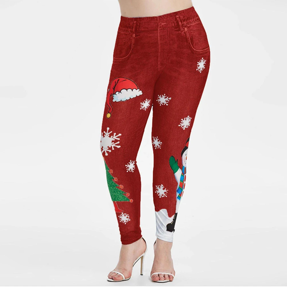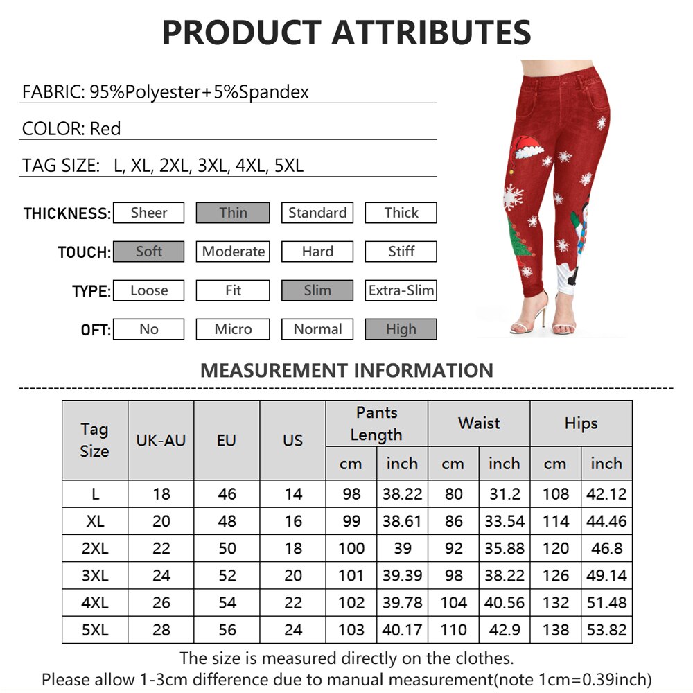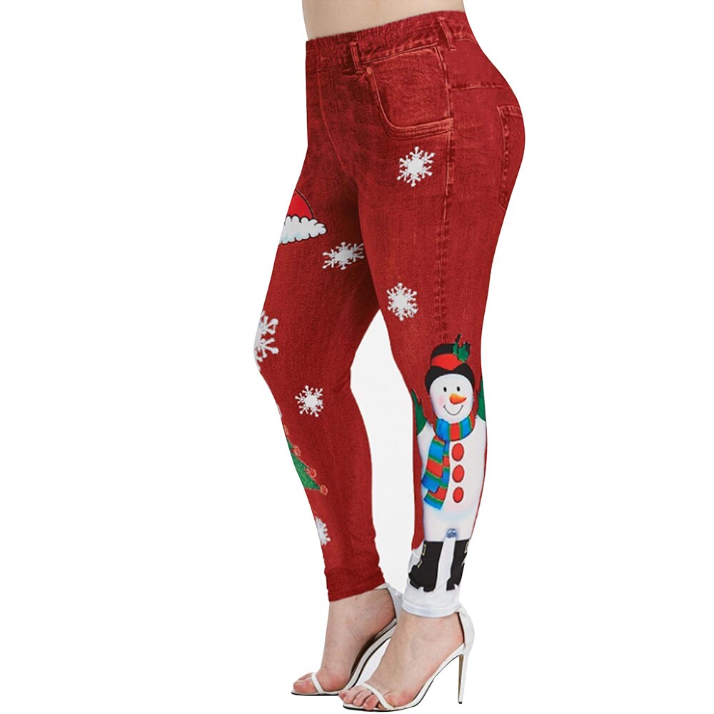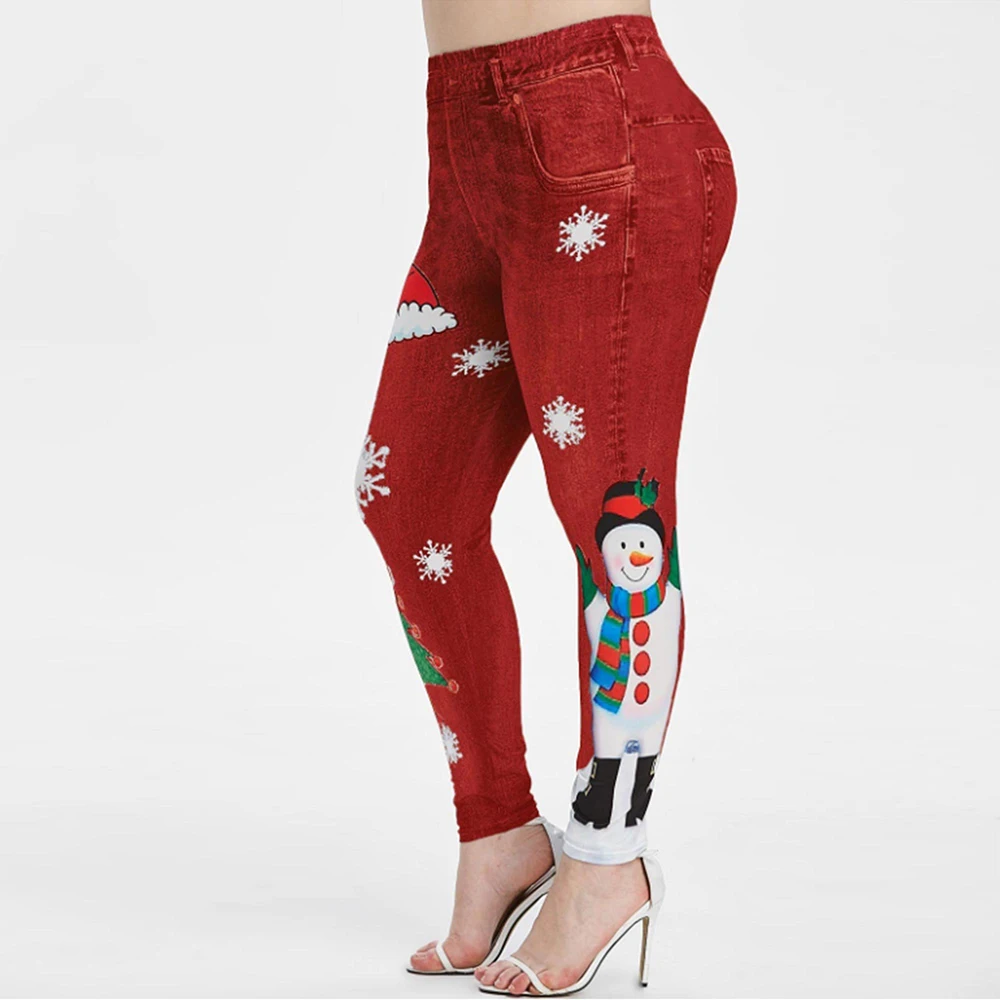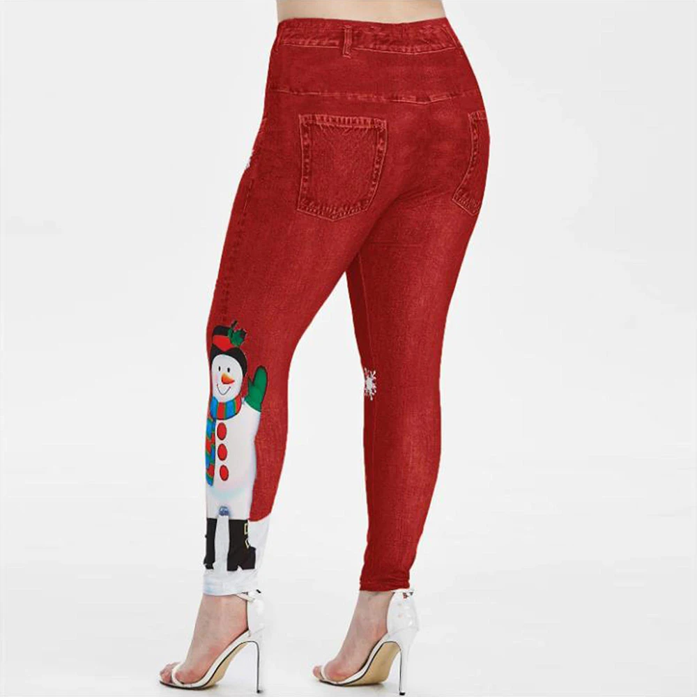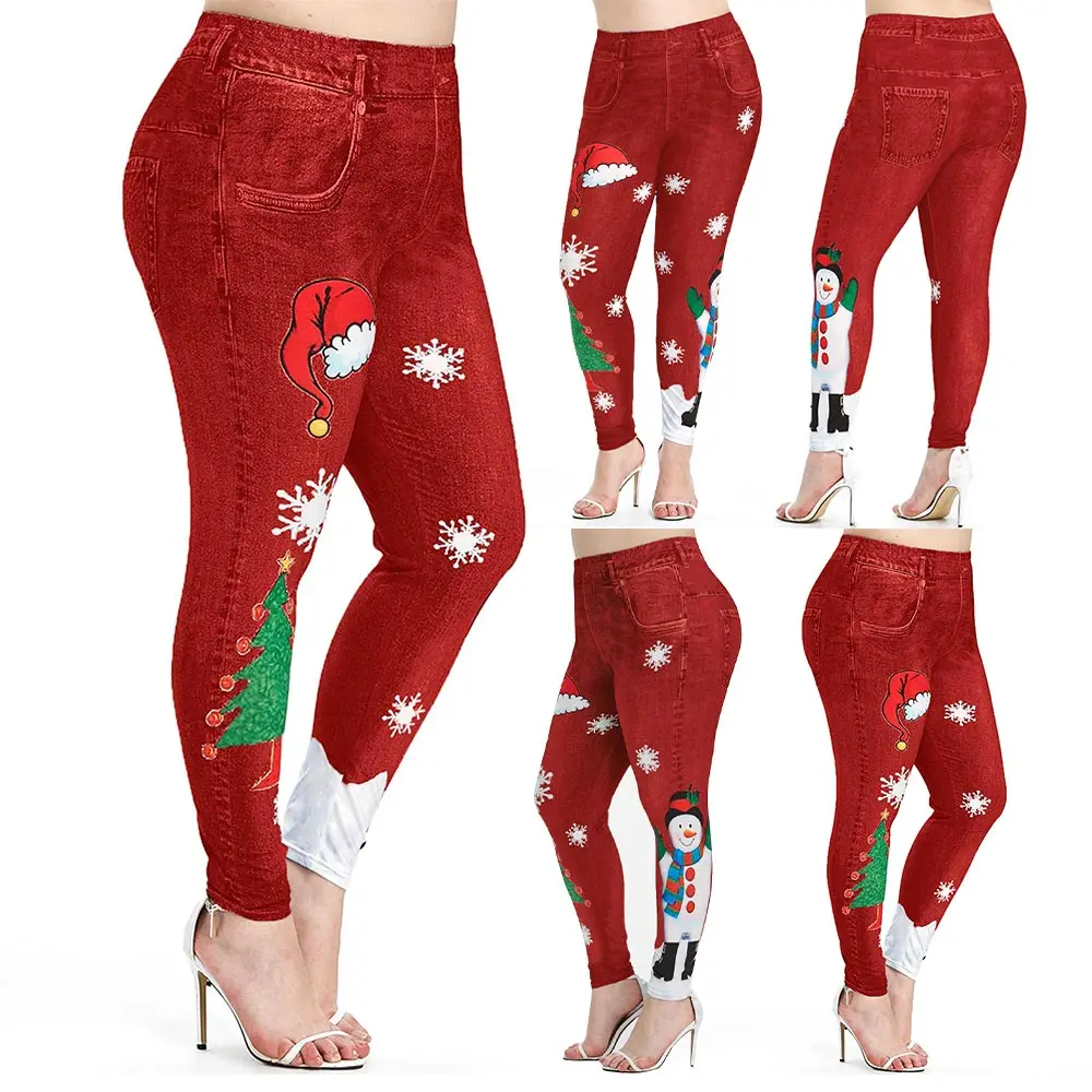 5xl plus size feminino natal imprimir calças de brim calças de brim cintura alta magro jeans casual alta estiramento lápis calças push up leggings