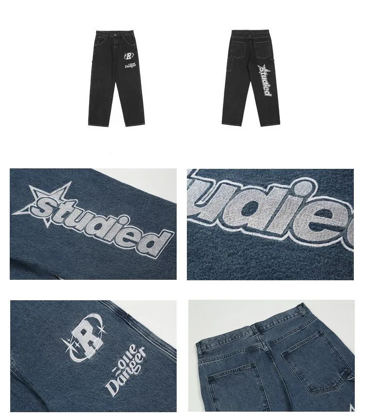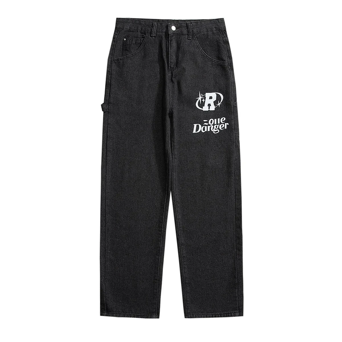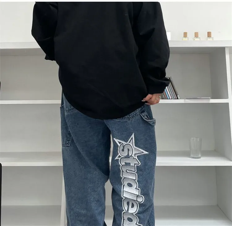 Americano high street jeans dos homens europeus americanos mulheres na moda marca hiphop esfregando impressão ampla perna casais macacão