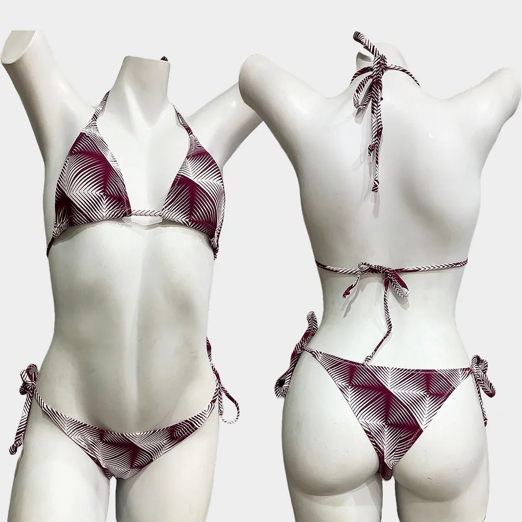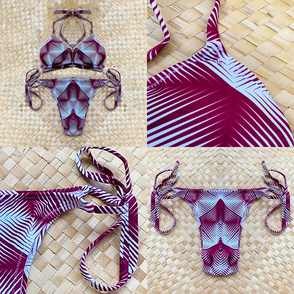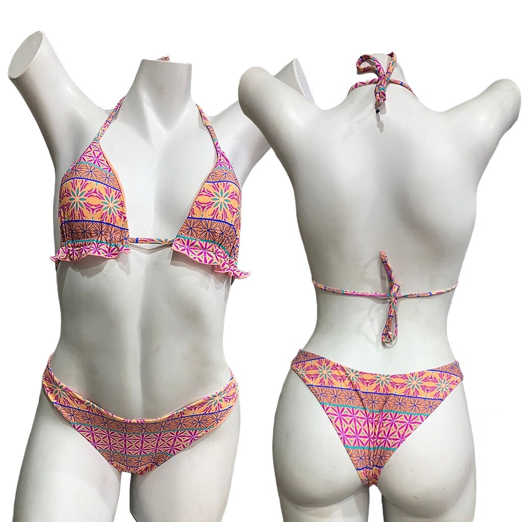 Biquini cortininha com mistura de estampas alças finas tecido leve