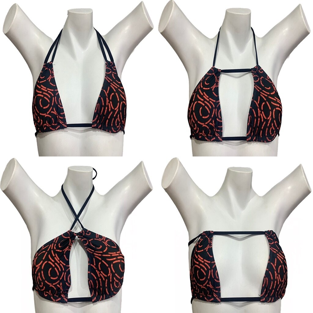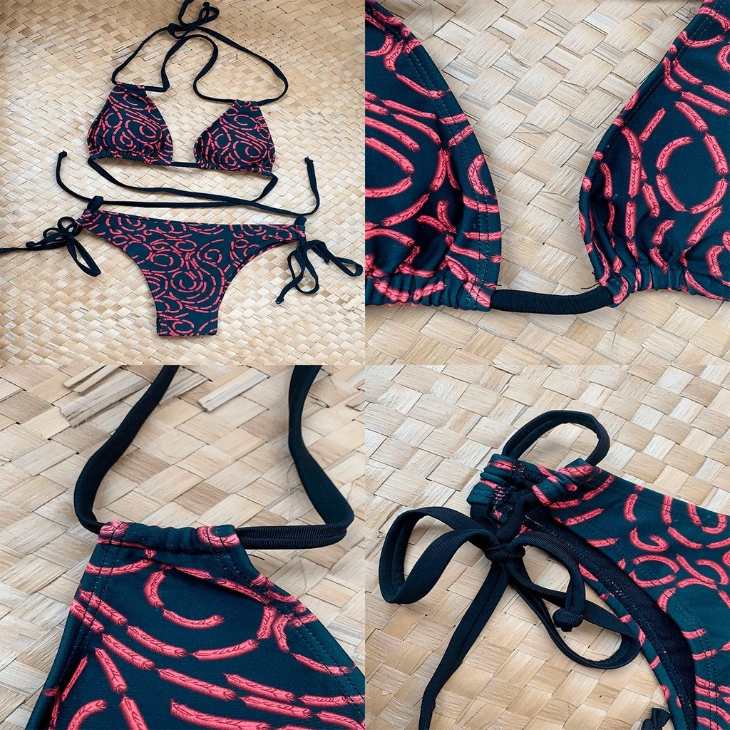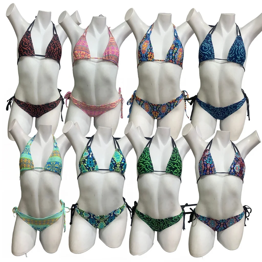 Biquini cortininha multiformatos com mistura de estampas alças finas nível leve