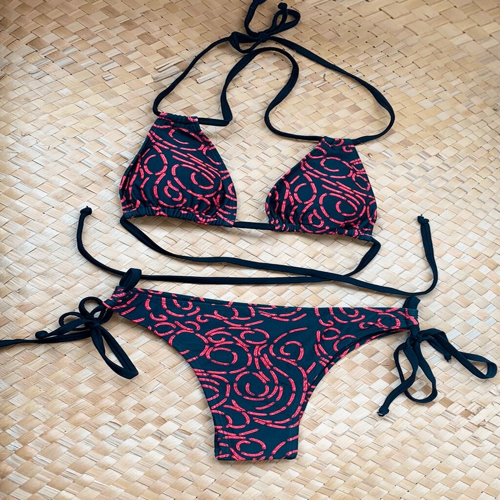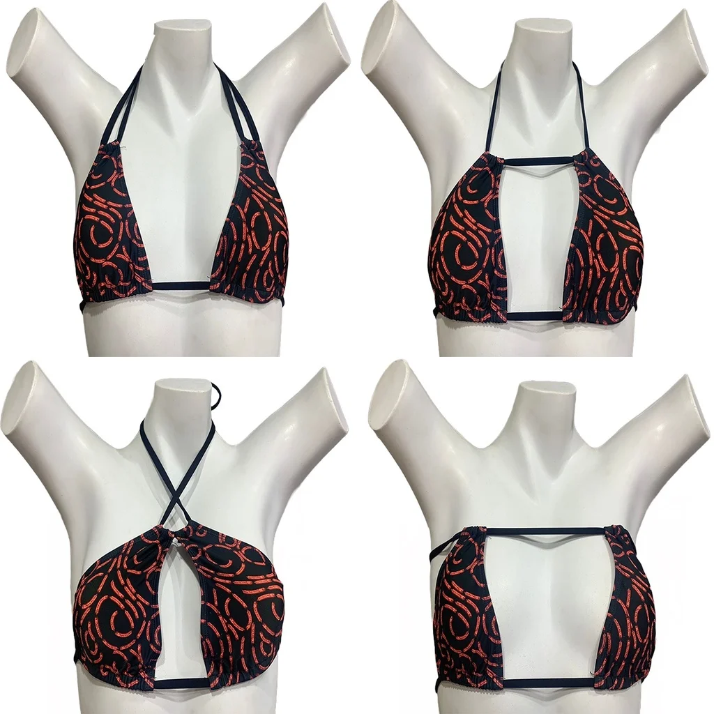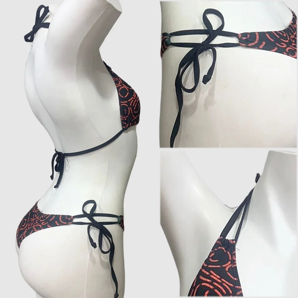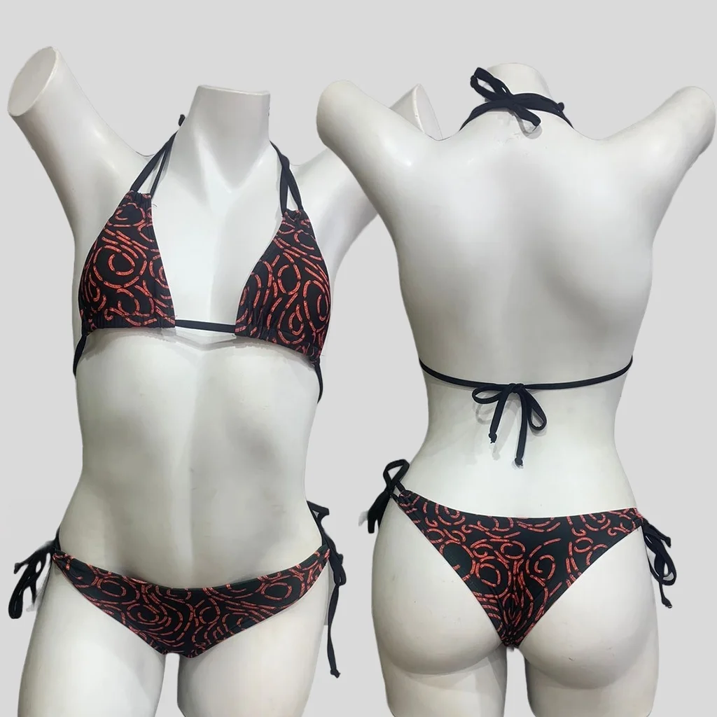 Biquini cortininha multiformatos com mistura de estampas alças finas nível leve