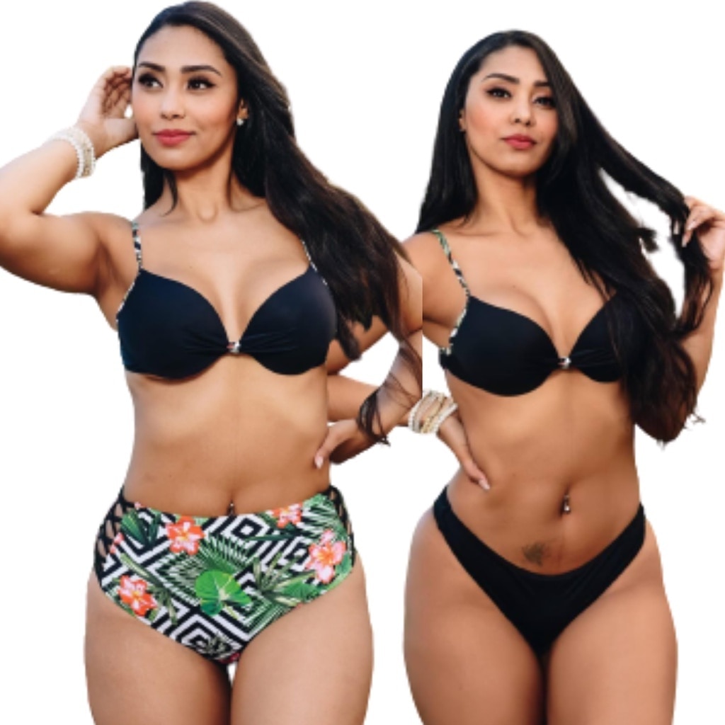 Biquini cintura alta acompanha 2 calcinha topo bojo resistência