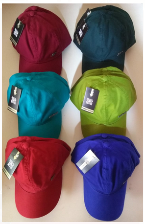 Bonés com pequenos bordados ou botons.