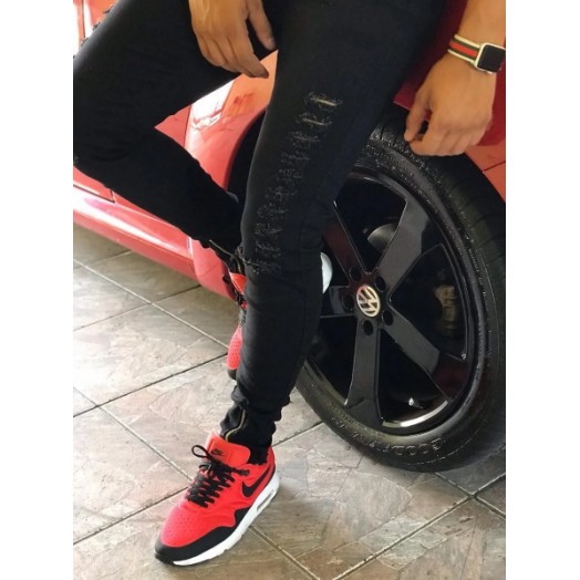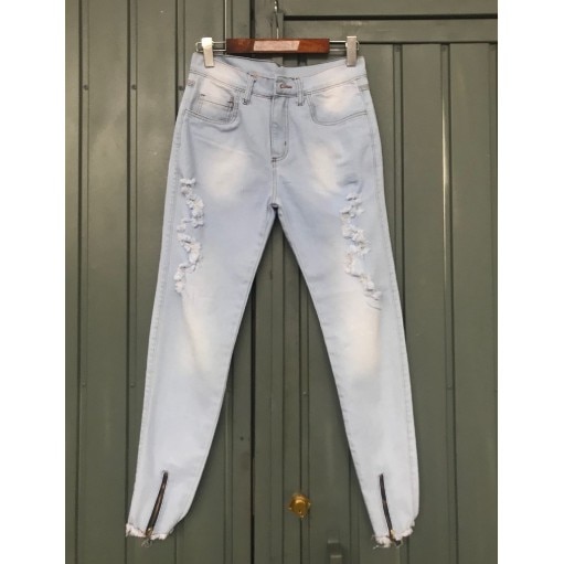 Calça super skinny detalhada destroyed c/zíper rascada