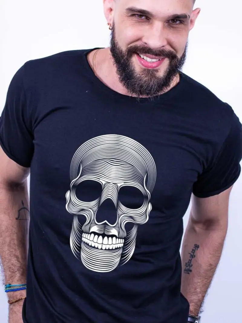 Camiseta Bilhan Caveira Abstrata, Camiseta Masculina, Manga Curta, Camiseta Estampada, Moda Masculina, Frete Gratis