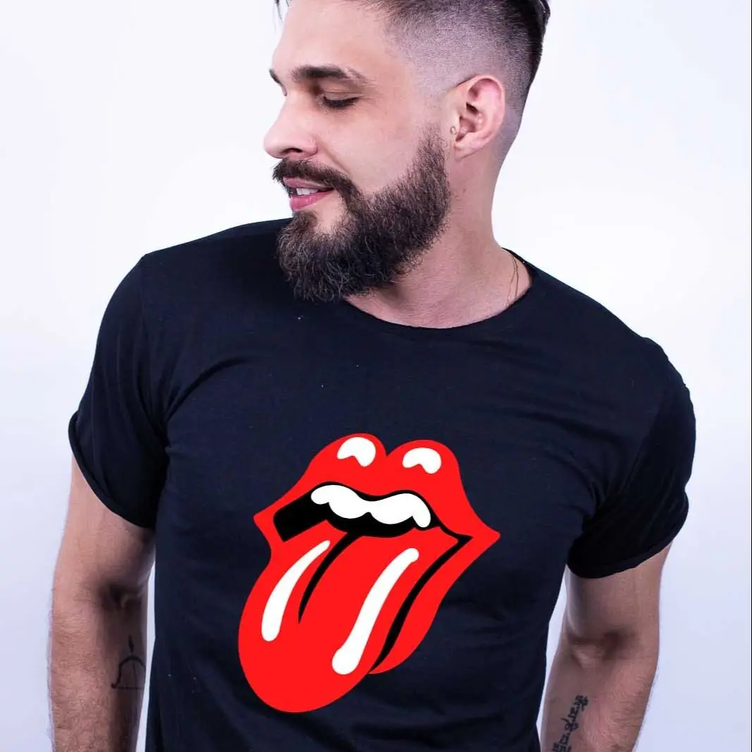 Camiseta Corte a Fio Bilhan Boca Rolling Stones, Manga Curta, Gola Canoa, Roupa Masculina, Estampada, Moda Masculina com Frete Gratis, y2k