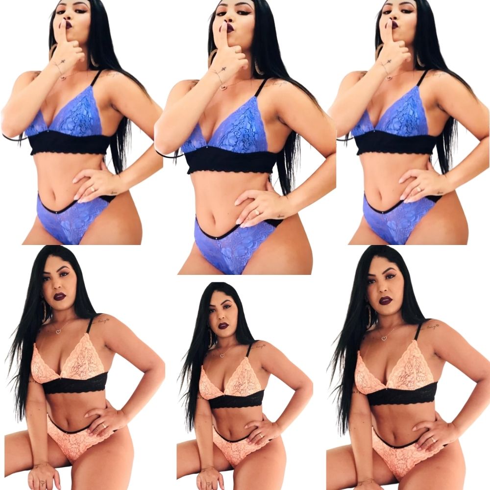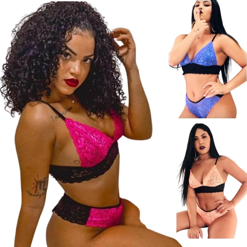 Conjunto lingerie renda calcinha e sutian box e semi fio