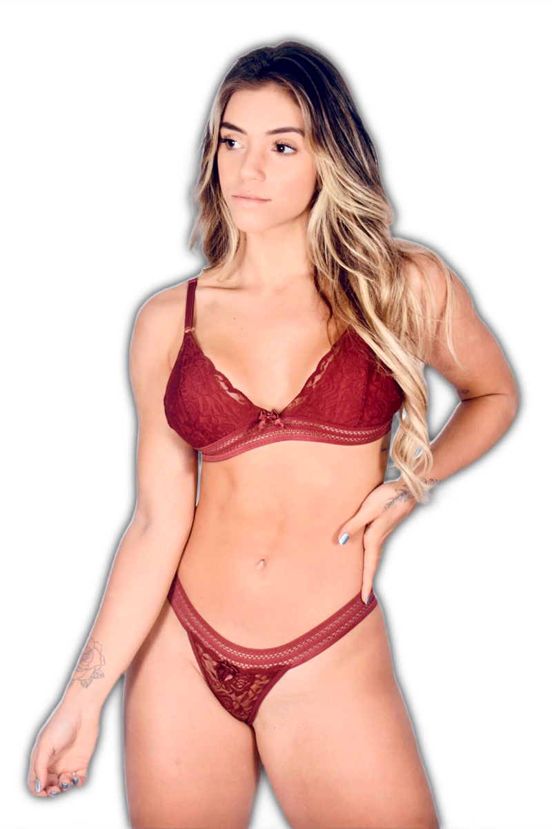 Conjunto Lingerie Feminino sem bojo em renda, com elástico trabalhado.