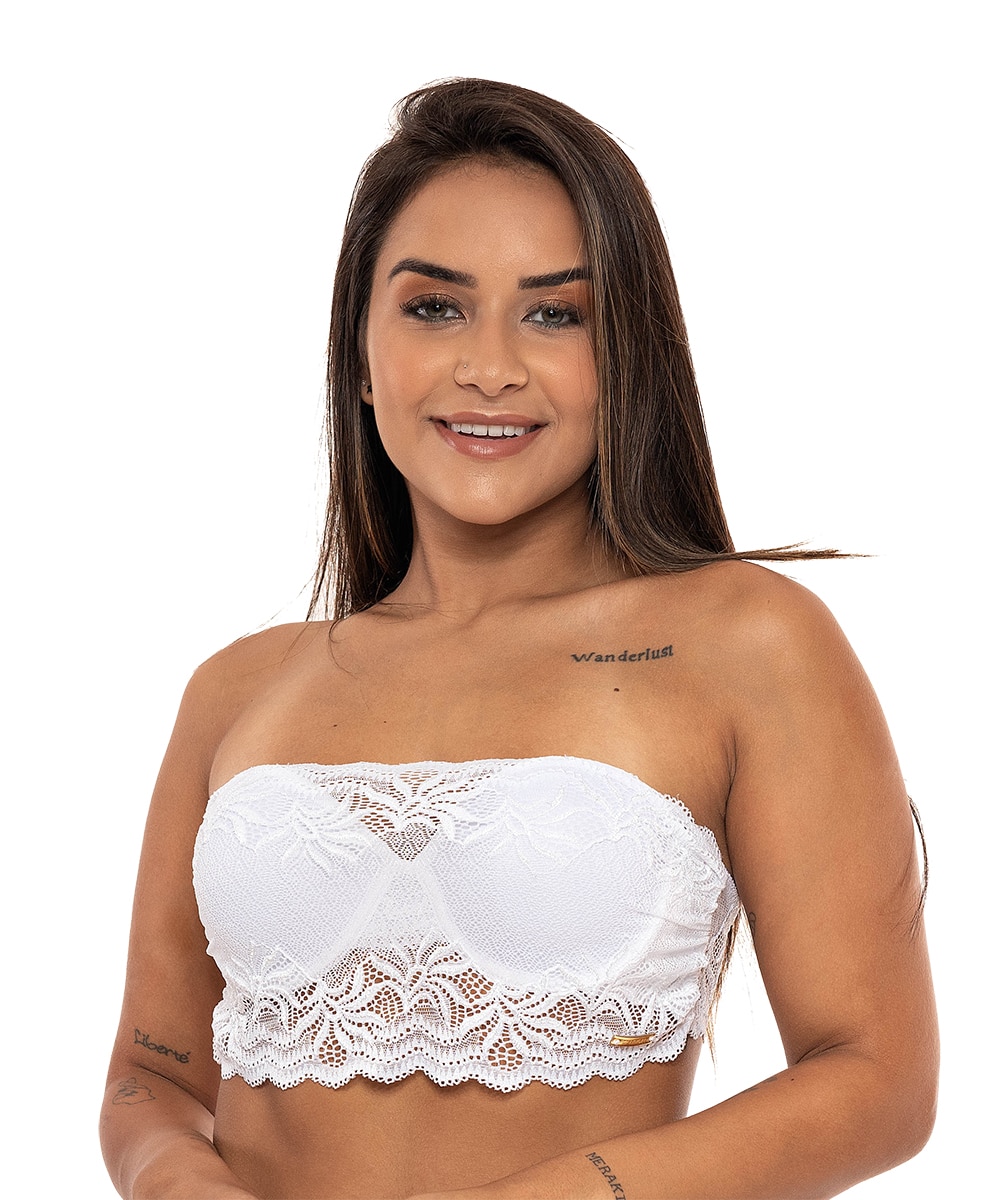 O Sutiã Bustiê possui bojo encapado todo em renda, modelo tomara que caia, com fecho duplo nas costas. Veste muito bem. O modelo pode ser utilizado com qualquer tipo de roupa!