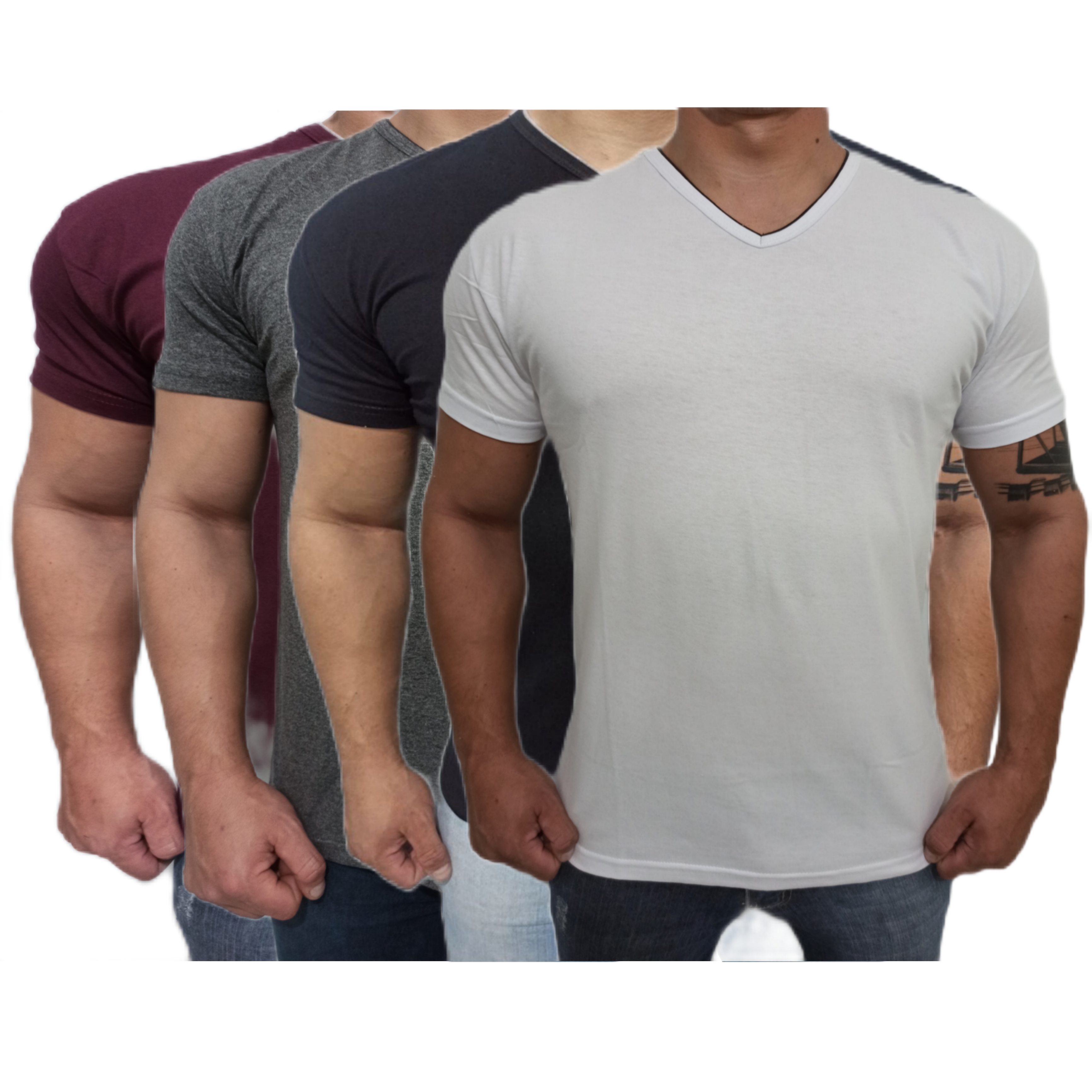 KIT 04 Camisetas Gola V Lisa Algodão Fio 30.1 Penteado