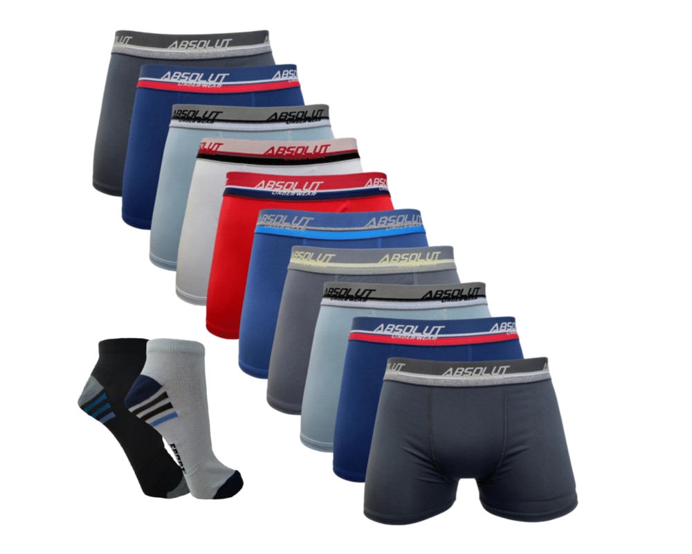 Kit Cuecas Boxer Lisas em Microfibra + 6 Pares de Meias Cano Curto
