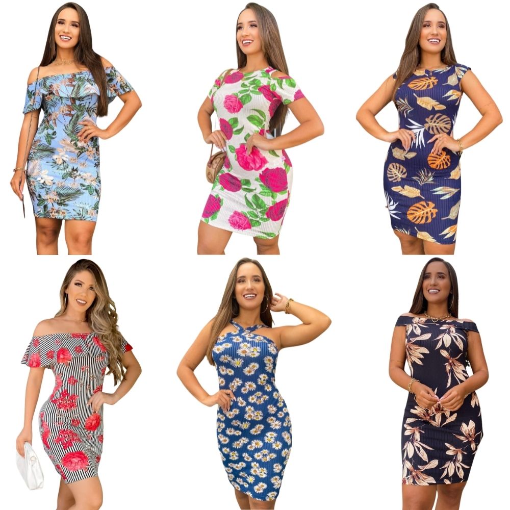 VESTIDO ADULTO ELEGANTE ESTAMPADO MALHA CANELADA