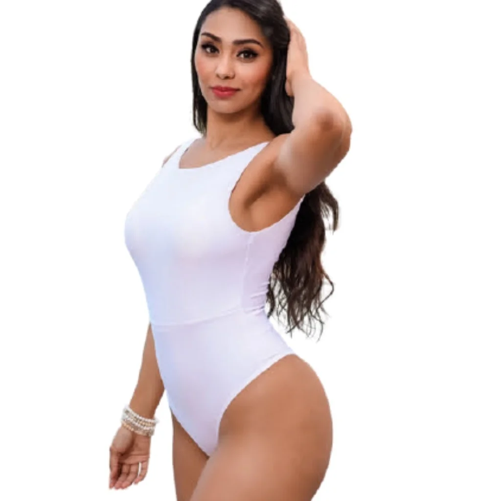 Parte superior: regata linhas médicas, sem regulagem, bojo removível, costa nua.