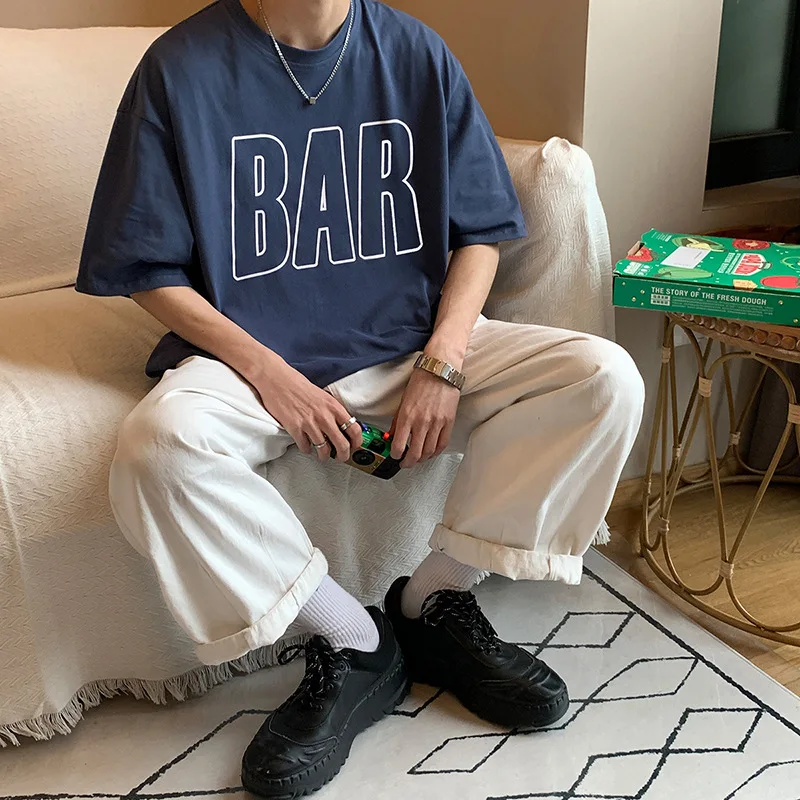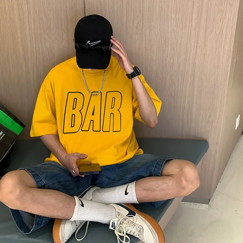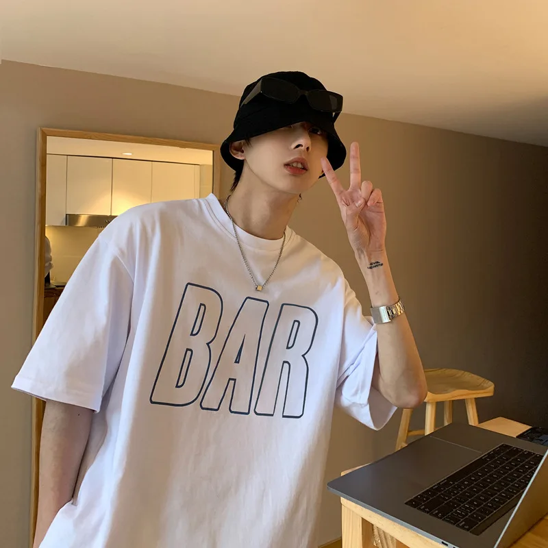 Verão europeu e americano camisa de manga curta tendência masculina solta hysteps originais de pano ins maré bonito