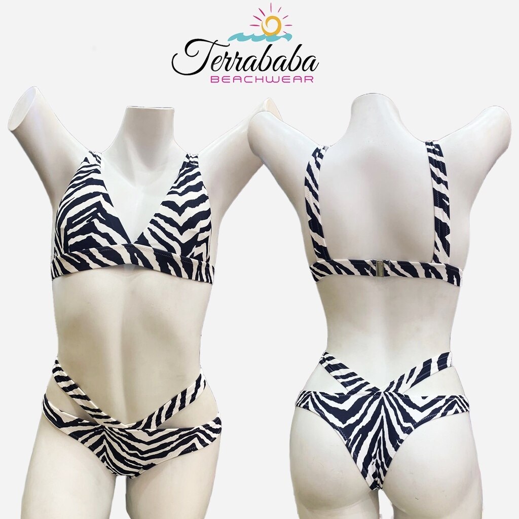 Biquini estampado zebra topo cortado bojo removível calcinha fio duplo