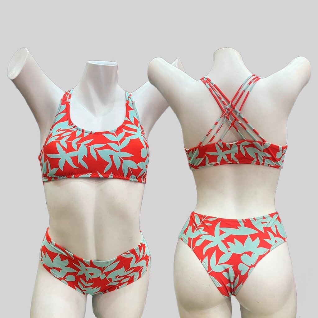 Biquini floral topo cortado calcinha calças quentes moda praia retro verão
